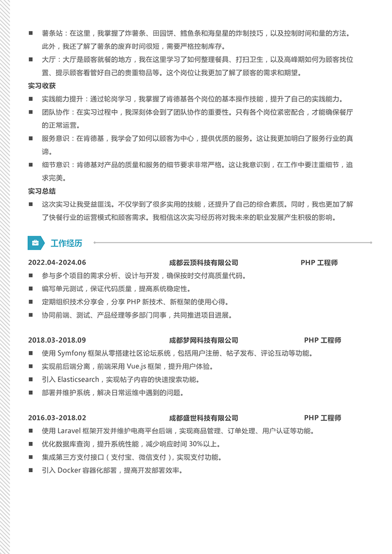 2022.10-2024.06 单位:成都云顶科技有限公司 岗位:PHP开发工程师